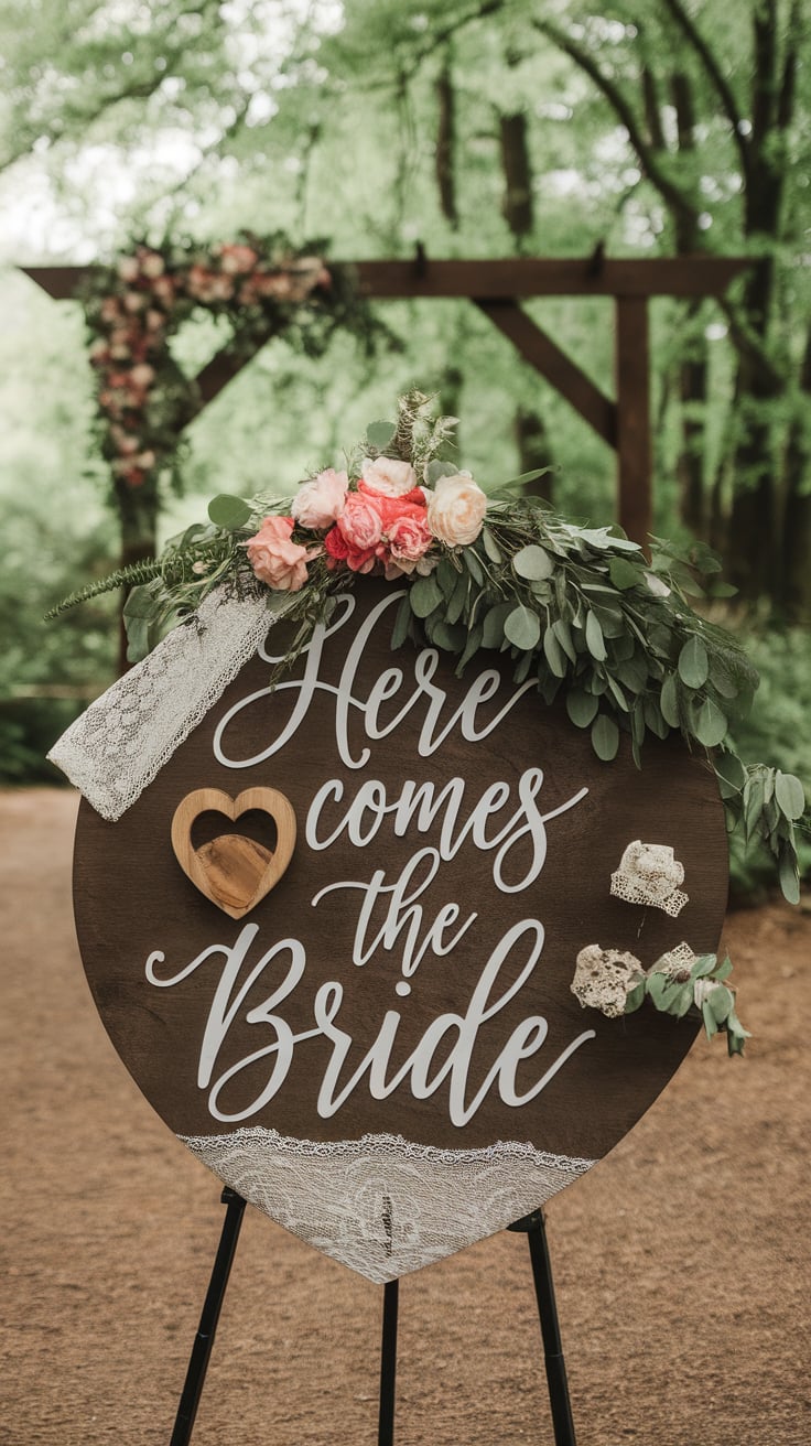 Incorporating these ideas can transform simple wooden signage into enchanting focal points, perfectly aligning with your woodland wedding decor ideas.