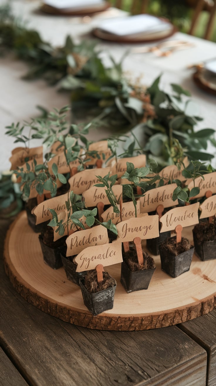 - Pinecones: Small pinecones tied with twine make delightful placeholders that capture the woodland spirit.