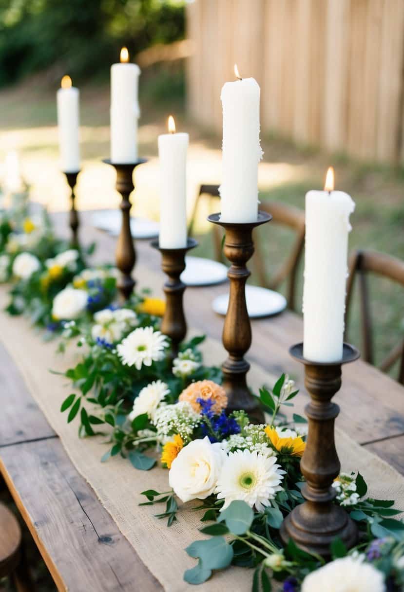 Using a burlap table runner adds a charming rustic touch to your wedding. It easily blends with different decor styles, giving your tables a cozy feel. You can pair it with lace or simple centerpieces to enhance the look.