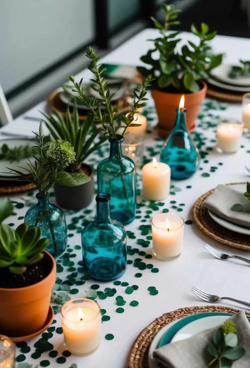 Place long floral stems inside the bottles for an elegant effect. Alternatively, use them as candle holders to create a warm, romantic atmosphere. This eco-friendly option is sure to impress your guests.