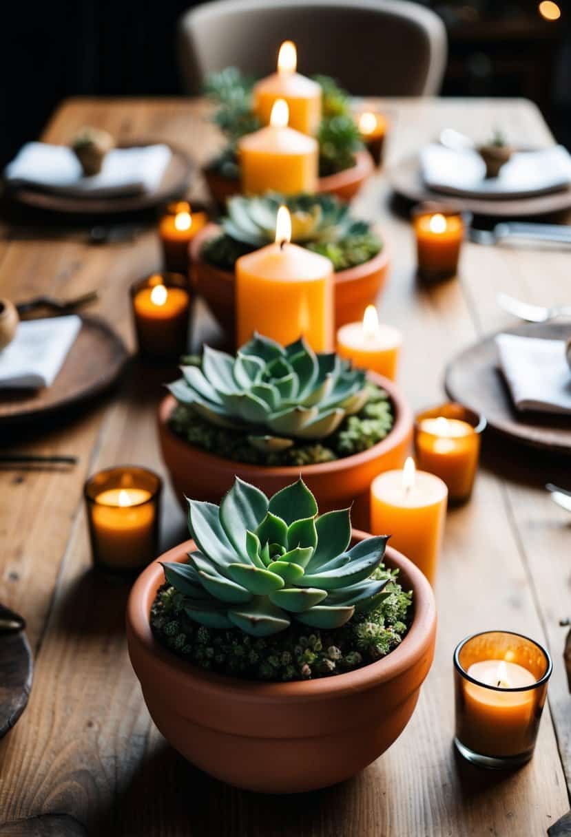 Mini terracotta pots are a charming way to dress up your wedding tables. Their natural look pairs perfectly with succulents, offering a simple yet elegant touch. You can place a single succulent in each pot, adding a hint of green that complements any wedding theme.